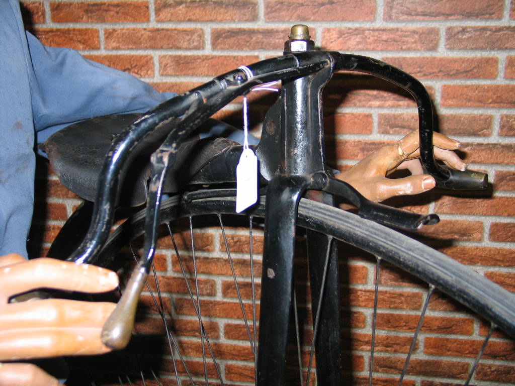 The 54 inch bike we see here in the pictures is not the most recogniseable bicycle in the world, so I am glad it carries a maker's plate. The oval backbone, tangent spokes and the characteristic front hub make it interesting.